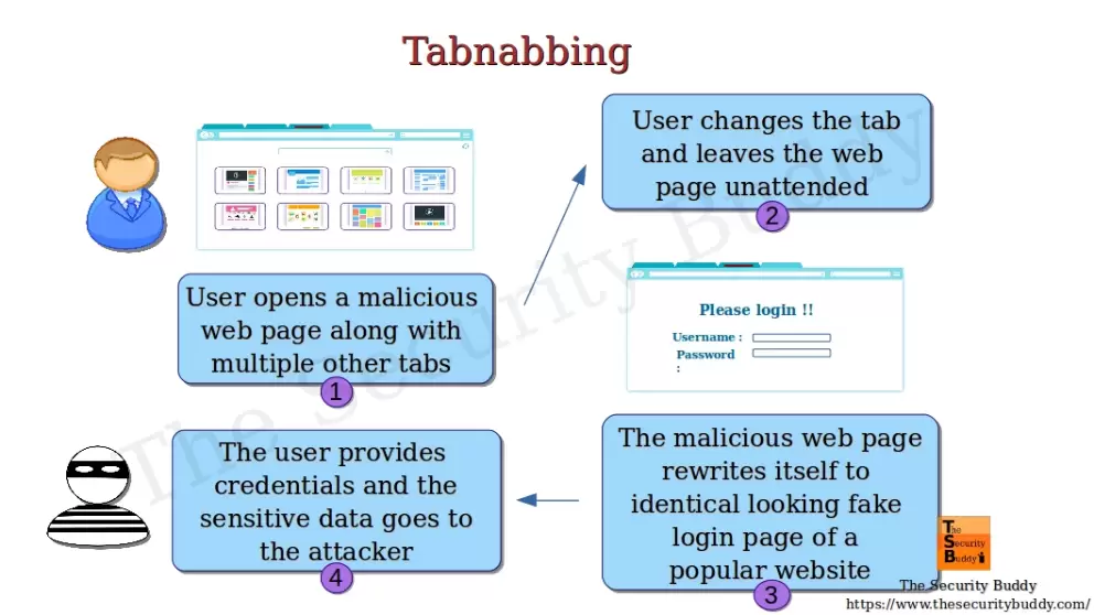 https://www.freecodecamp.org/news/what-is-tabnabbing/ https://www.thesecuritybuddy.com/phishing/what-is-tabnabbing/